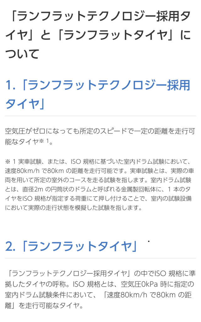 ランフラットタイヤ[RFT] 2020/10/06 お知らせ こんにちは!井上です! ランフラットタイヤの交換を 行ったのでランフラットタイヤに ついて説明していきたいと 思います(^_^) タイヤ BRIDGESTONEパタン TURANZA ER33 (トランザ イーアールサンサン )サイズ 245/40R18 このマークがついてるタイヤは ランフラットタイヤです 高速道路上や街中での急なパンクでも 速度80km/hで80kmの距離 を走行する事ができます なので スペア交換 修理キットを 使わずに安全な場所まで 移動できる というタイヤです(^^) ランフラットタイヤを装着するには エアー内圧を知らせてくれる機器 TPMS(エアーセンサー)を をつける必要があります。 タイヤが潰れない そのまま走れてしまうのでセンサーを 付けないとわかりませんからね(^^) 基本的にエアーセンサーは ランフラットタイヤが標準装備 の場合に付くようなかたちに なっていますね! ありがとうございましたm(_ _)m